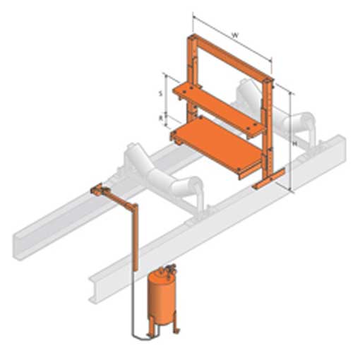 A coil mounting set is optionally available for protection of upper coil against damage due to overburden on the conveyor. Materials are steel and fiberglass-reinforced plastic, impact bar cushioned with rubber.